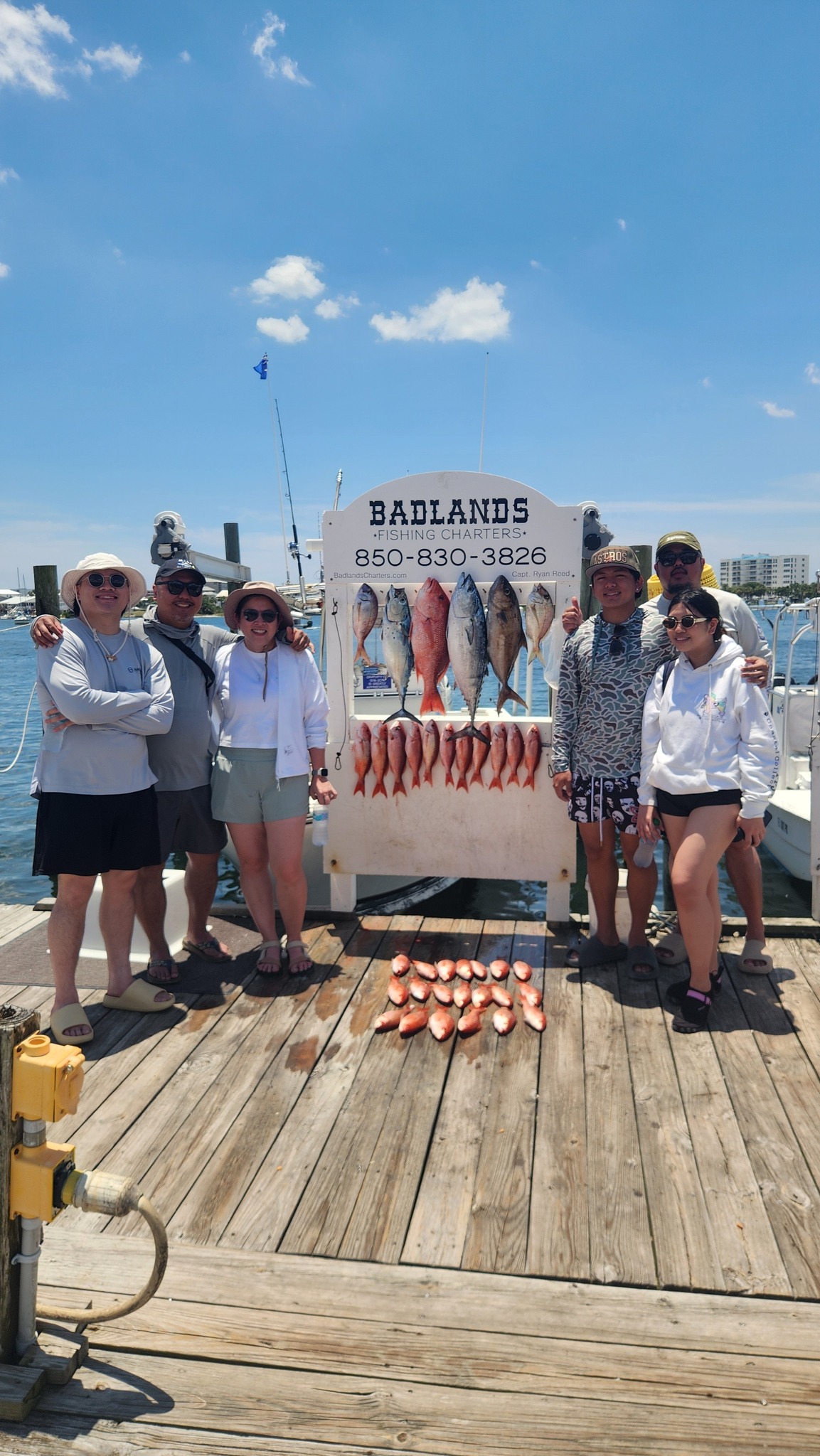 Step aboard Badlands Charters and discover why Destin, Florida is known as the Luckiest Fishing Village in the World. This gallery showcases real moments from our Destin fishing charters, where families and friends reel in unforgettable catches and smiles. From early-morning Red Snapper runs to afternoon deep sea fishing adventures, every photo captures the excitement of fishing with a local expert who knows the Gulf inside and out. Whether you’re looking for family fishing charters, Destin dolphin tours, or sunset cruises, these snapshots highlight what makes every trip with Captain Ryan Reed truly special.